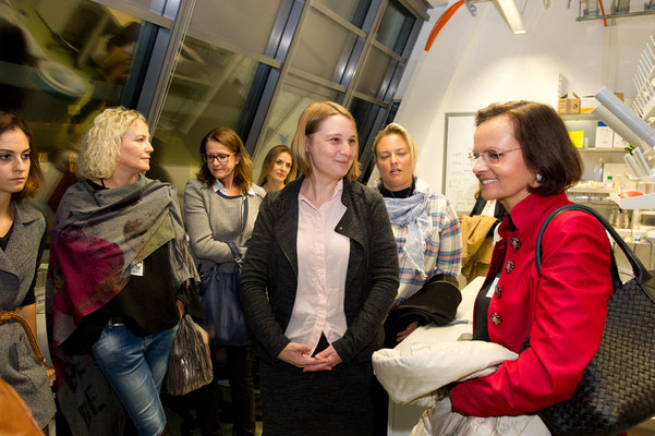 Gastgeberin und IST Austria-Marketingchefin Dr. Lisa Cichocki freute sich über soviel Frauen-Power direkt aus der Umgebung des Instituts: „Wir freuen uns besonders, die dynamische Entwicklung des jungen Forschungsinstitutes IST Austria in diesem Rahmen näher vorstellen zu dürfen“. Viele der KlosterNEUbürgerinnen waren erstmalig am Campus und zeigten sich beim Blick hinter die Kulissen beeindruckt vom Forscher-Geist der internationalen Exzellenzeinrichtung.